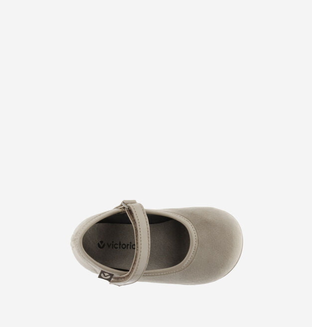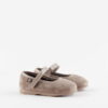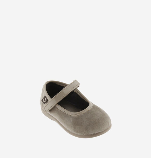 Merceditas de terciopelo para niña. Detalles en charol y cierre mediante tira adherente que facilita el calce y fomenta su autonomía.