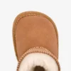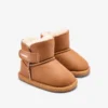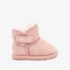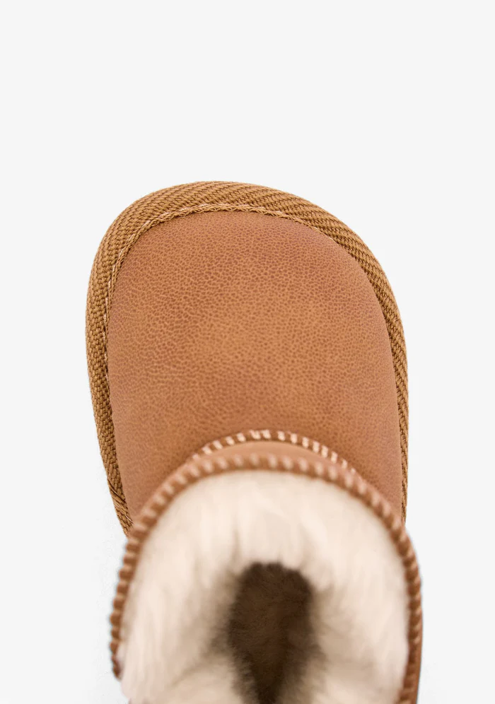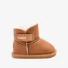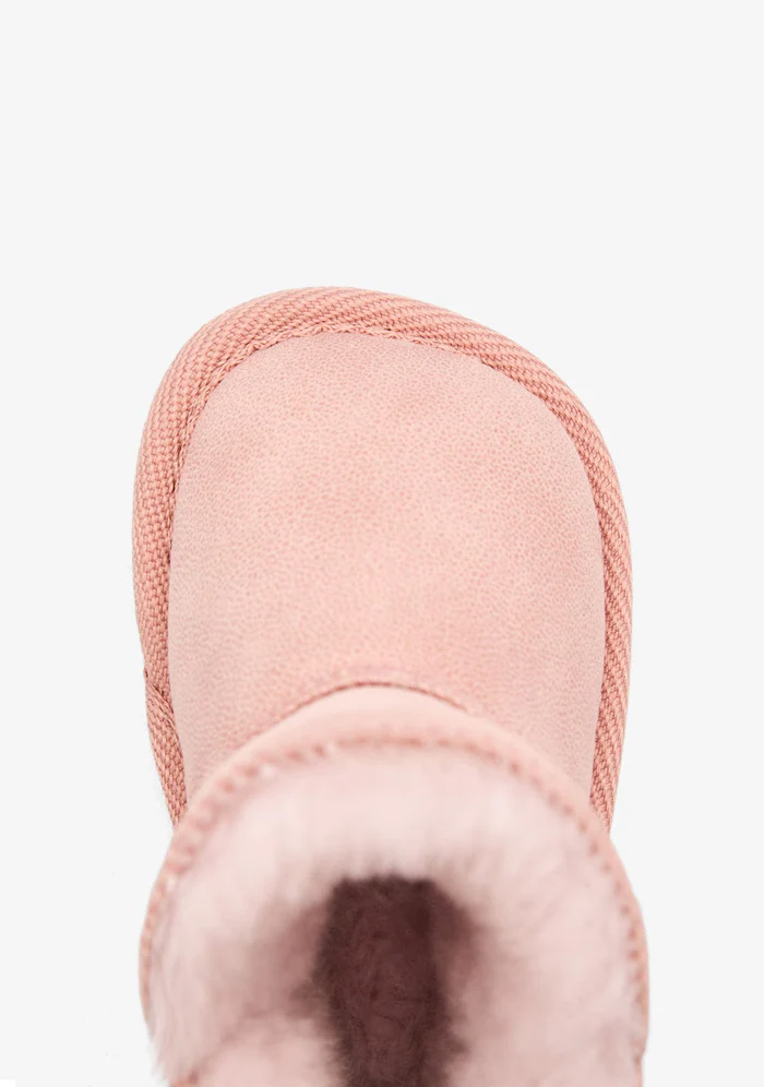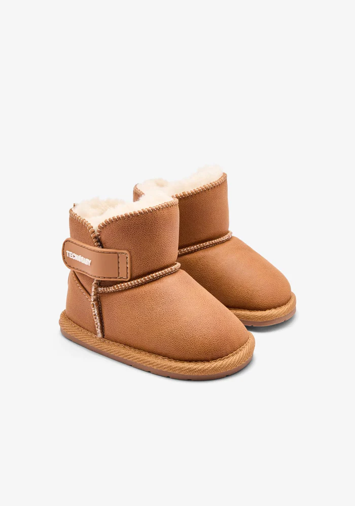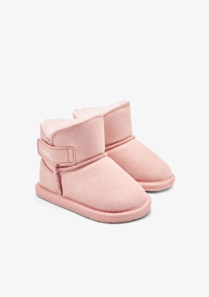 Botas australianas para bebé. Un imprescindible para sus pies en episodios de frío. Este diseño está confeccionado con forro interior en pelo sintético perfecto para mantener abrigados a los más pequeños. Su tejido exterior de microfibra con efecto napa le aporta un acabado suave y afelpado. Además, cuenta con un cierre de tira adherente en el lateral de fácil quita y pon.