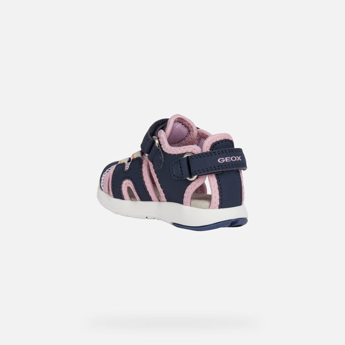 Disfruta del verano con la colorida cangrejera de niña de Geox. La sandalia Multy es perfecta para los días soleados, transpirable y diseñada para mantener los pies frescos y cómodos durante las aventuras al aire libre. Confeccionada en durabuck y malla azul marino, con acabados en rosa y multicolor, esta cangrejera es un modelo «water-friendly» con punta cerrada que ofrece protección, comodidad y estilo a los delicados pies de las niñas.