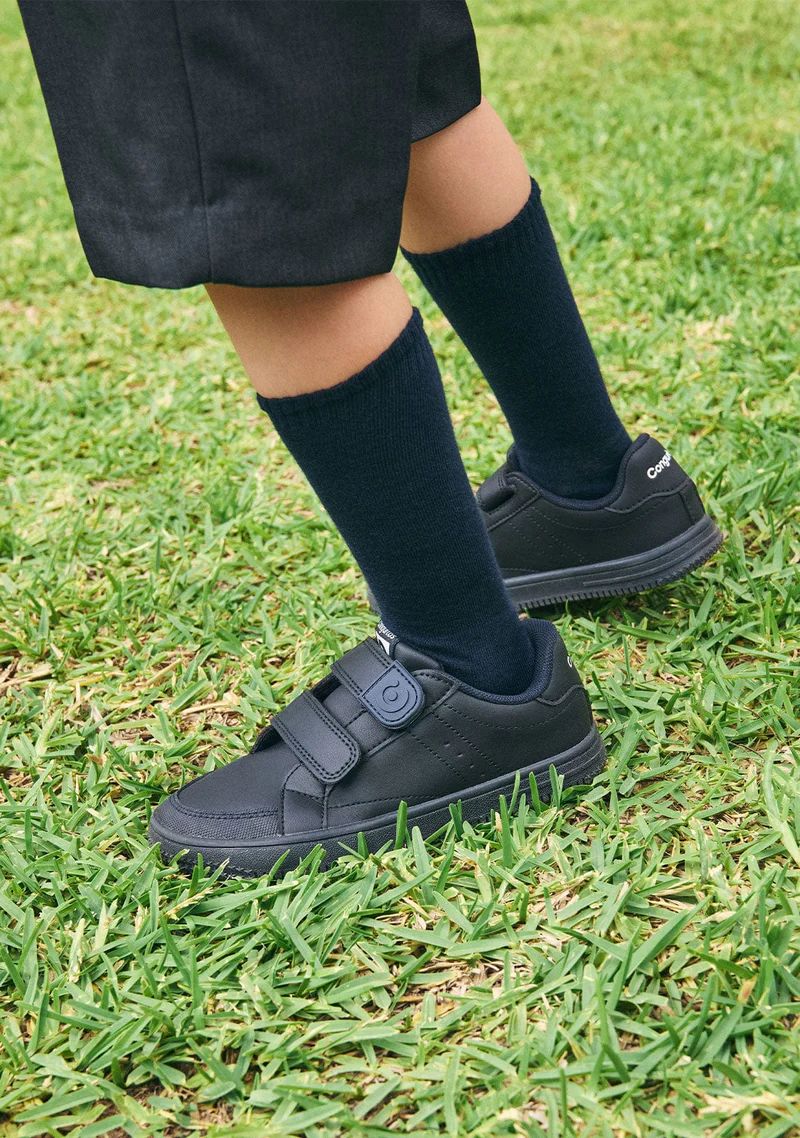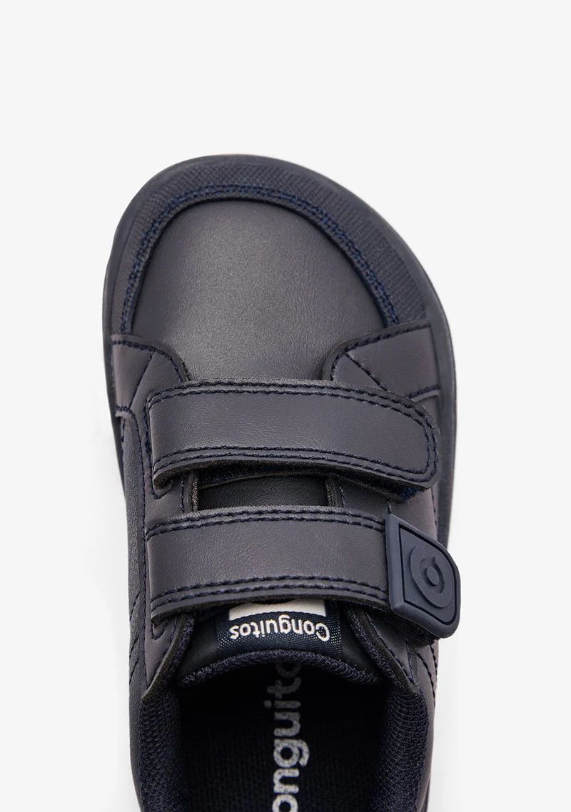 Deportivas respetuosas basicas para el colegio. Confeccionadas con napa y plantilla interior textil. Su cierre de tiras adherentes en la parte delantera permite una sujeción perfecta y ajustable. Además, cuentan con la puntera y el talón reforzados.