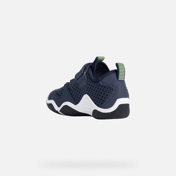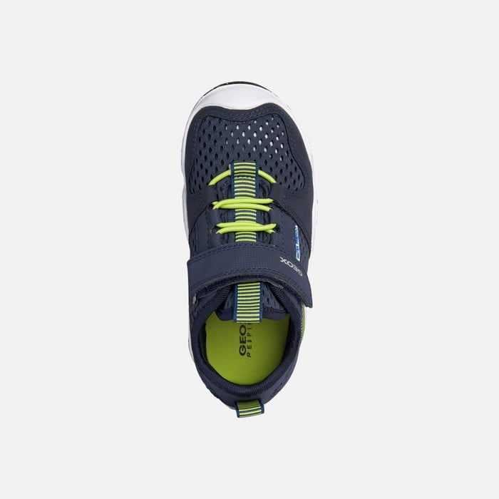 Prepara a tus jóvenes aventureros para un verano lleno de diversión y comodidad con estas deportivas Geox en azul marino y verde lima. ¡Descubre la combinación perfecta de estilo y funcionalidad!