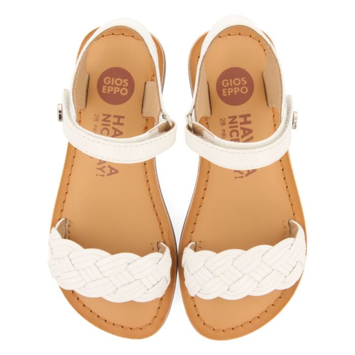 ¡Cómodas y estilosas! Sandalias blancas con plantilla acolchada y trenzado en la pala. El cierre ajustable proporciona una mayor autonomía a los peques. Cuentan con forro de piel curtida en tenerías que siguen un proceso de curtición más sostenible según los estándares de Leather Working Group (LWG). Sus zapatos favoritos están en Gioseppo Kids.