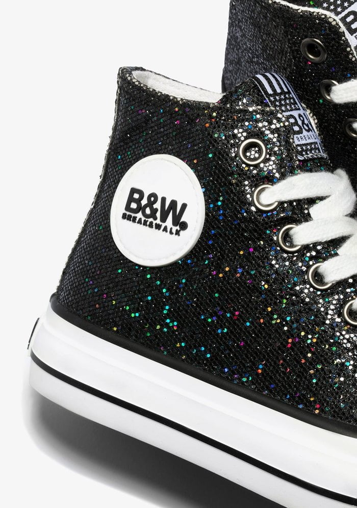 Las Zapatillas Casuales Conguitos son el calzado perfecto para las niñas que quieren destacar con estilo. Estas zapatillas altas, confeccionadas en llamativo glitter negro, son la elección ideal para añadir un toque de brillo a cualquier ocasión.